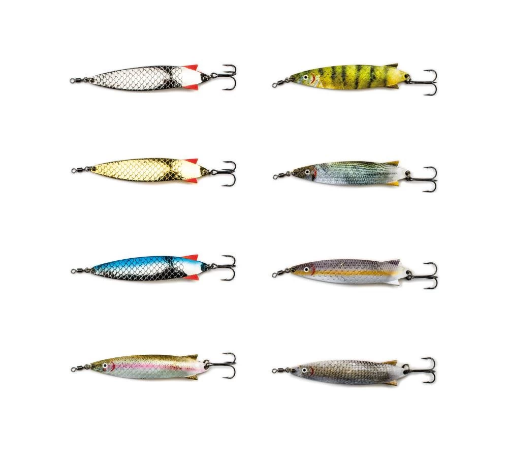 Besonders geeignet sind diese Blinker für MEERFORELLE, HECHT, ZANDER und andere Raubfische im Süß- und Salzwasser. Dieser traditionelle Raubfischlöffel ist seit Jahrzehnten einer der meist verwendeten Blinker für Raubfische aller Art. Seine pfeilförmige Form lässt sich hervorragend werfen und sein unwiderstehliches Laufverhalten im Wasser lässt keinen Raubfisch kalt. Dieser Löffel hat eine Wirkung wie kein anderer. Sein massiver Metallkörper sinkt mit konstanter blinkend und flatternd im Wasser wie eine verwundete verwundete Elritze. Entwickelt, um jede Art von Raubfische zu fangen, die auf den Biss reagieren. Brillantes, hochglänzendes Finish mit hochwertigen Drillingen. Der Basti-Spoon ist aus solidem 2,5 Millimeter starkem Metall gefertigt. Es gibt ihn mit einem Wurfgewicht von 28 Gramm und in acht tollen Farben. Fünf davon naturnah mit der neuen Fotoprint-Bedruckung.