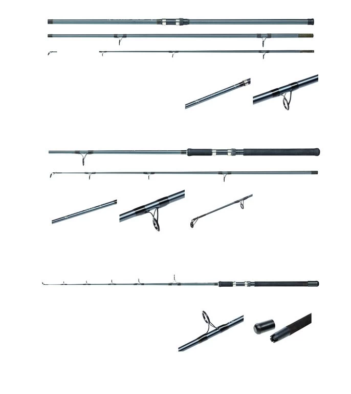 | Modell | Länge | Tr.-Länge | Teile | Wurfgewicht | Gewicht | Ringe |