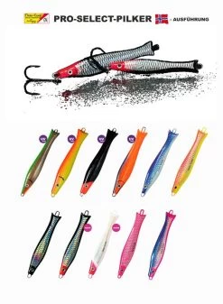 Diese selbstleuchtenden Gummi-Makks besitzen stabile Makk-Haken. Der Leuchtschlauch überzieht diesen gebogenen Haken und ist mit einem Karabiner-Wirbel bestückt. Die Makk sind zweifarbig mit Glitter und einem Leuchtende. Es gibt diese Makks in drei Farben und einen Mix. Die Hakengrößen reichen von 4/0 bis 12/0. In jeder Packung sind 3 gleichfarbige Makks enthalten (außer 12/0 – 2 Stück). Beim Mix ist von jeder Farbe ein Makk enthalten (außer 12/0 – 1x Schwarz + 1x Rot).