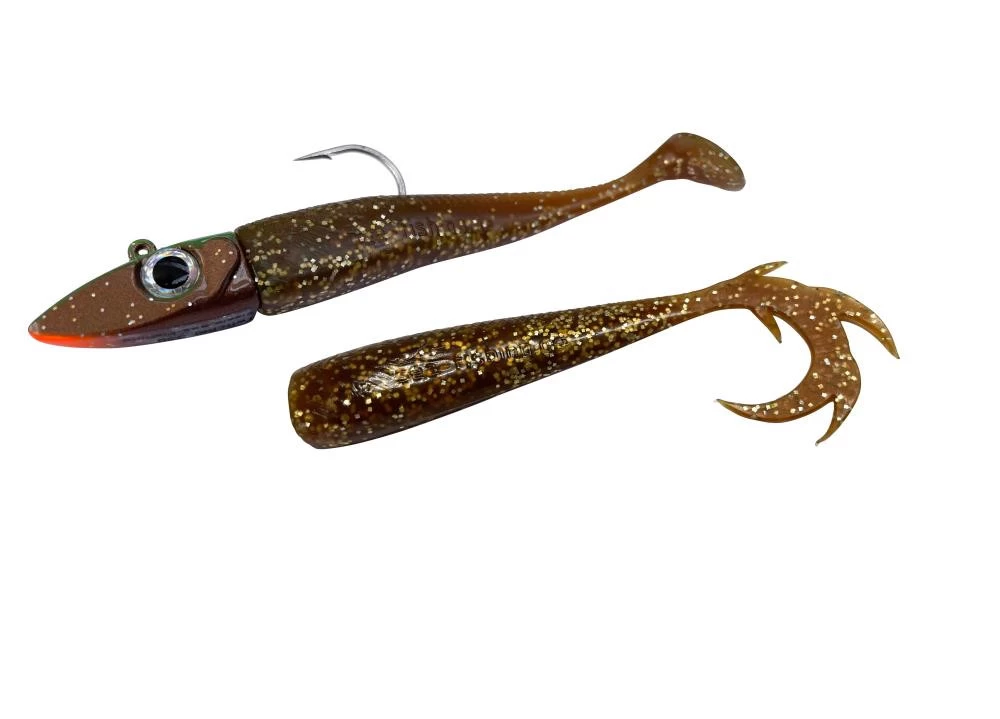 Der Softlure Flexxxi Mini ist Made in Germany. Er ist super weich, extrem haltbar, oohne toxische Weichmacher, leicht auftreibend und in vielen Erfolgsfarben und zwei Gewichten verfügbar. Der Erfolg ist Kopfsache! Er ist an einem Eisele-Twitcher Jig-Kopf montiert – Der Tänzer! Verwendet wird ein verzinnter VMC Carbon Jig-Haken 60° und eine 3D XL-Auge. In jeder Packung ist ein fertig montierter Shad mit Paddle-Tail und ein Ersatz-Body mit Dragon-Tail enthalten.
