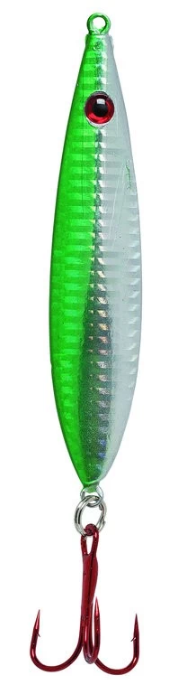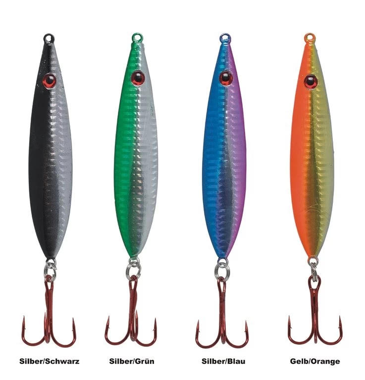 Dieser Pilker von Kinetic ist bleifrei. Er hat einen holographischen Körper mit High Gloss Finsih. Ausgestattet ist dieser Pilker mit einem roten Qualitäts-Drilling. Sie haben die Wahl zwischen vier schönen und fängigen Farben und vier Gewichten von 75g bis 200g.