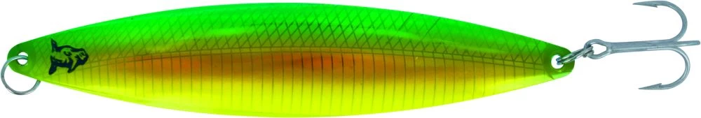 | 06 | Gold Green Dolphin | Grün und Neon Gelb auf Gold ist häufig der Gewinner in stark beangelten Revieren. Die etwas dezenteren Farben fangen von der Oberfläche bis 15 Metern Tiefe bei sonnigem Wetter. |