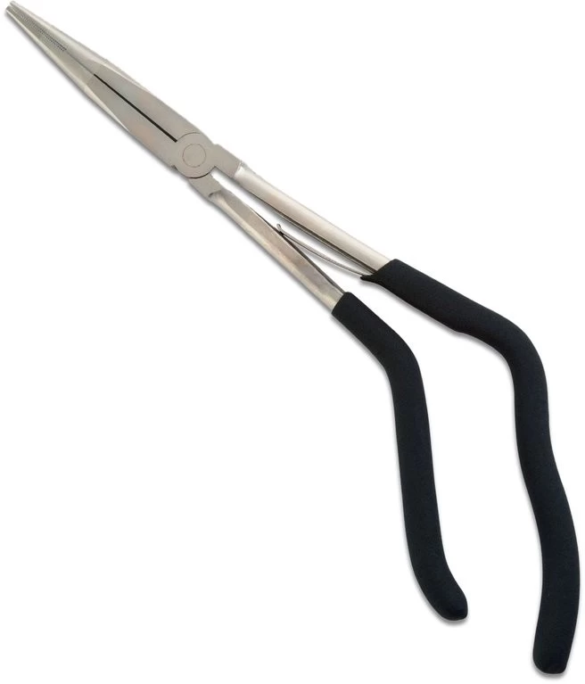 Das schonende und sichere Entfernen des Hakens aus dem Raubfischmaul ist mit dieser eleganten Zange kein Problem mehr. Durch die Verlängerung zwischen Griff und Hakenaufnahme gewinnt der Angler Abstand zwischen seinen Fingern und den scharfen Zähnen seines Fanges und kann den Haken schnell und schonend entfernen. Beliebt bei Hecht-, Wels- und Meeresanglern.