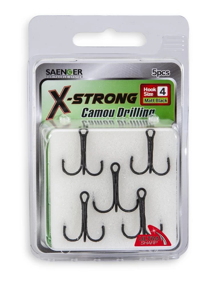 Diese Drillinge mit dem Gun Smoke Coating gibt es in verschiedenen Größen von 8 – 8/0. In jeder Packung sind jeweils 5 Stück enthalten.