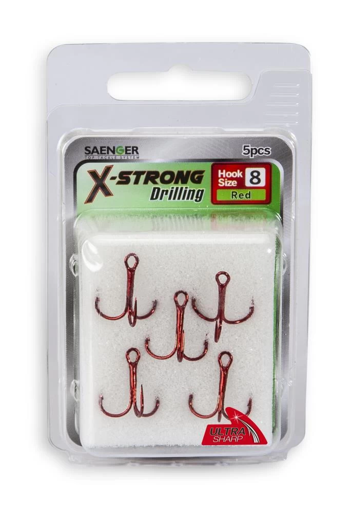 Diese Drillinge mit dem roten Coating gibt es in verschiedenen Größen von 8 – 8/0. In jeder Packung sind jeweils 5 Stück enthalten.