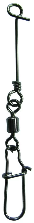 Diese Kombination aus Wirbel, Einhänger und Knotenlosverbinder ist speziell für geflochtene Schnüre gemacht. Mit dieser Variante gibt es keinen Knoten, der einen Schwachpunkt darstellen könnte.